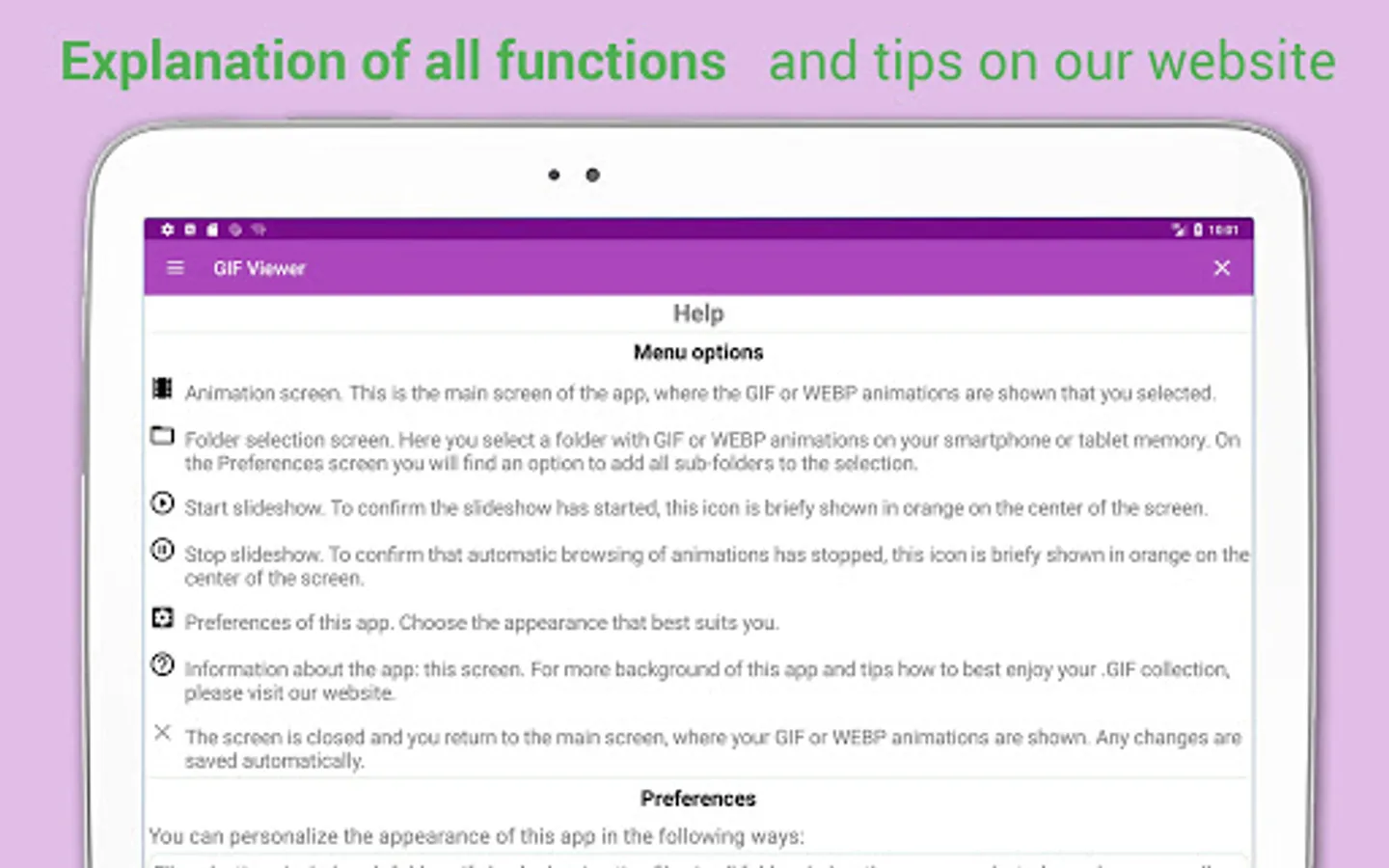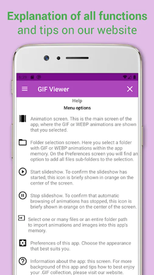 Import your .GIF or .WEBP animation collection to the app memory on your smartphone or tablet and start enjoying GIF Viewer today.
