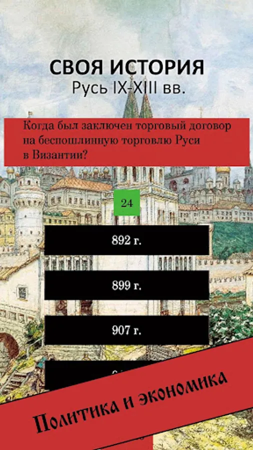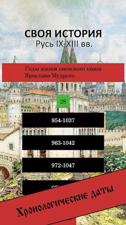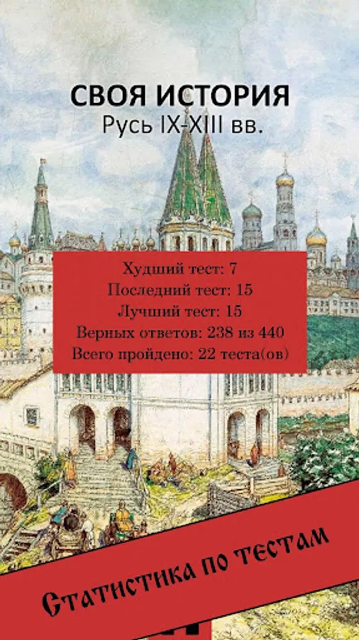 Each test question comes with a brief and clear information to help refresh your memory, or to explore the previously unknown events in the history of ancient Russia.