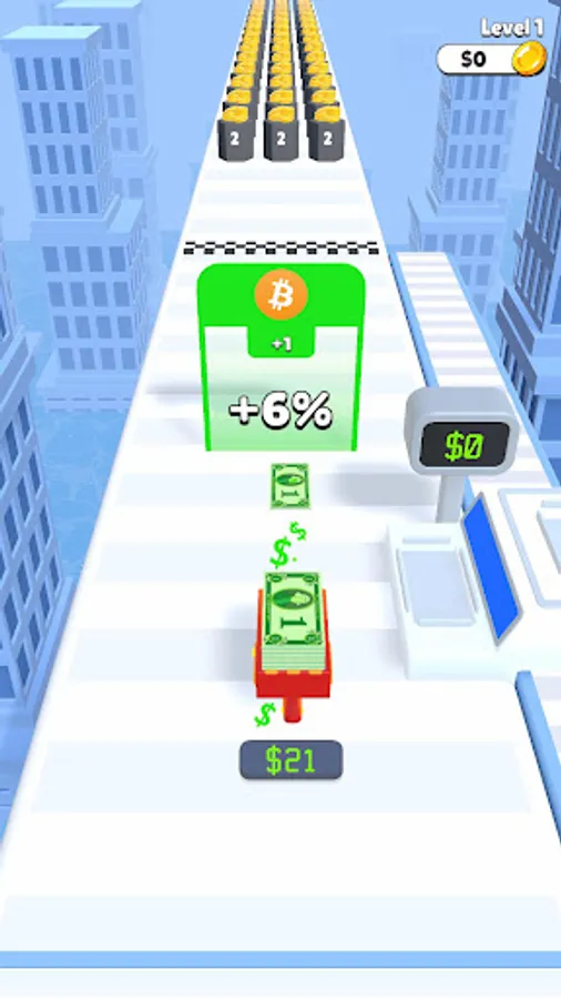Upgrade your shooting speed and range by unlocking and enhancing gates with the money you've accumulated. Keep an eye out for special investment gates that allow you to risk your earnings for the chance to multiply your wealth or face a minor setback. Strategize your way through these gates to maximize your profits.