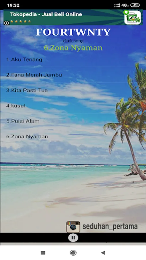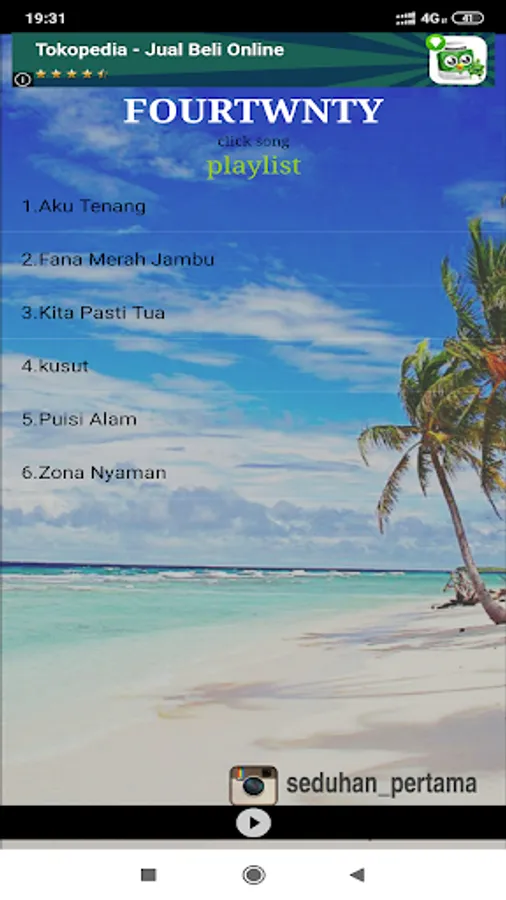 The fourtwnty song application that is played offline or without an internet connection, a collection of fourtwnty songs that you can play cool and nice, can accompany your leisure time anywhere and anytime.