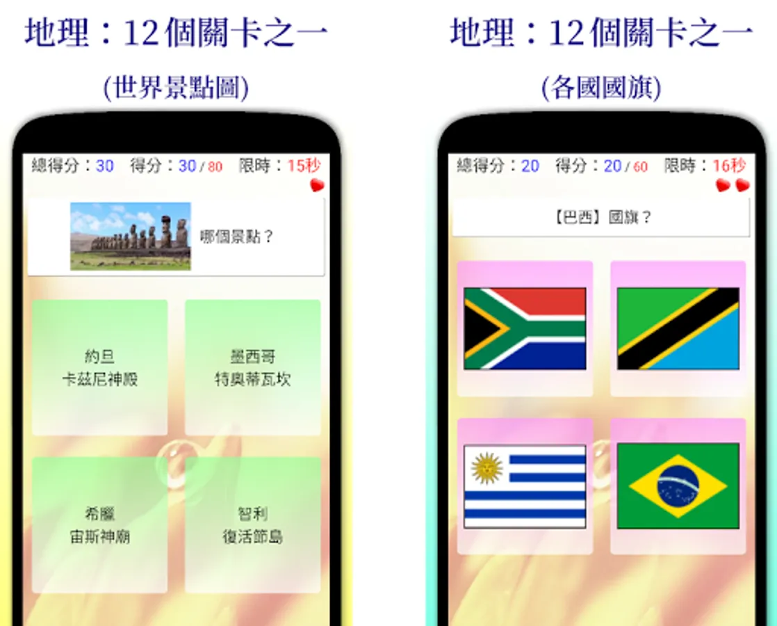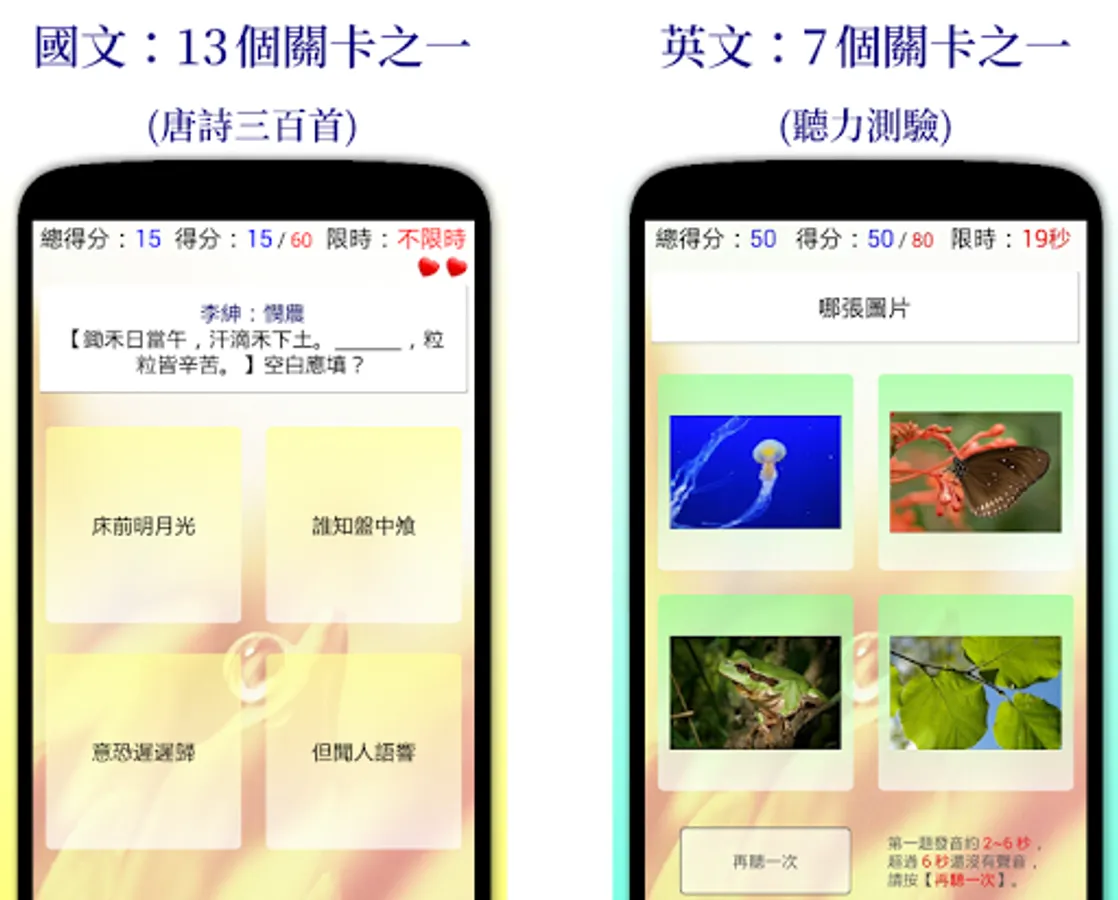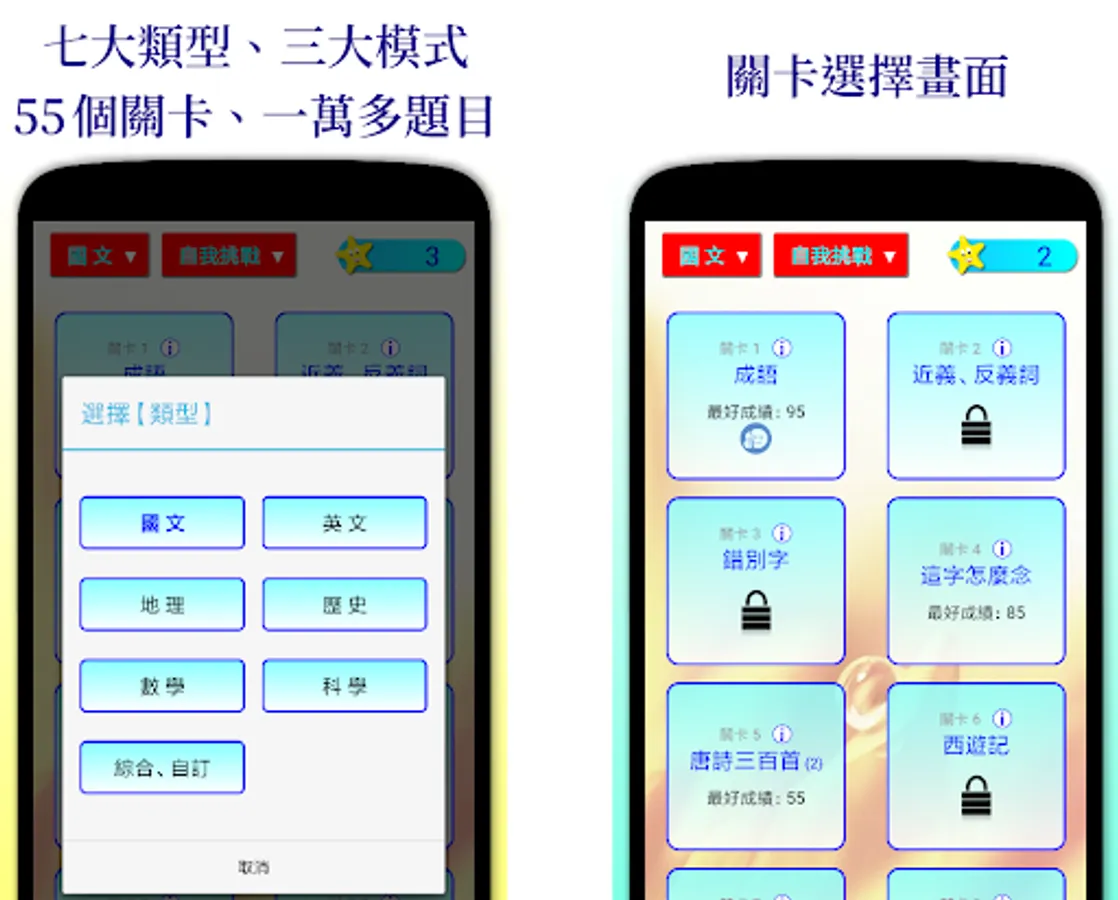 ● Seven game types, more than 10,000 questions, each type has different checkpoints and clearance conditions.