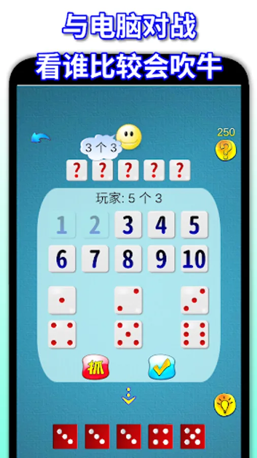 [Dice ● Bragging] is a fun [more luck, more judgment] dice game,