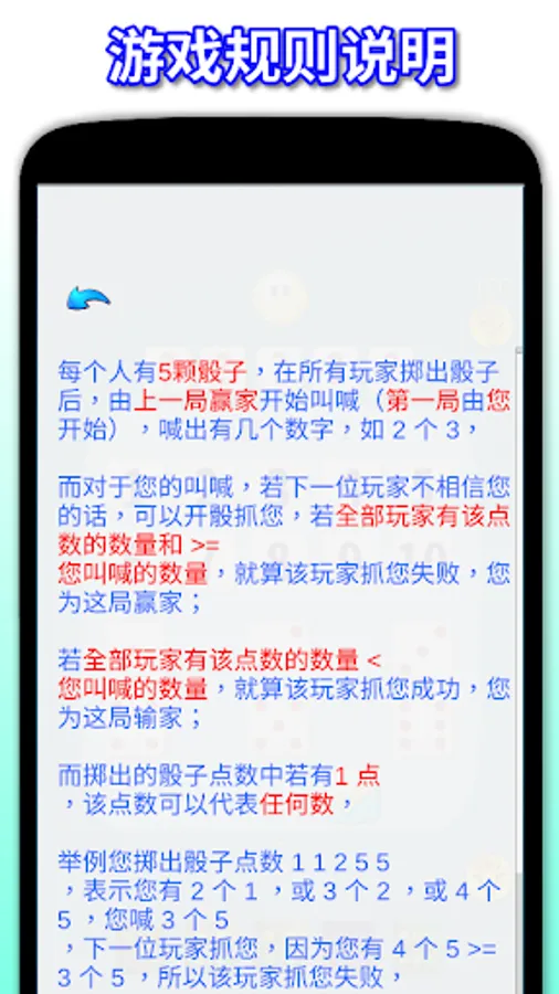 Use your brain to guess the number of "a certain dice" of "self + opponent". The player who guesses right is the winner, and the player who guesses the wrong one loses.