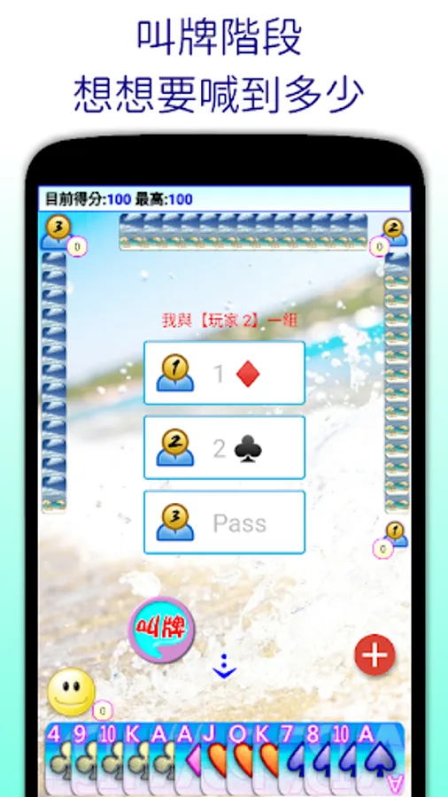 4) The next player can shout [Pass], or [1 + suit larger than the previous player], or [2 + suit that wants to be the trump card], and so on.