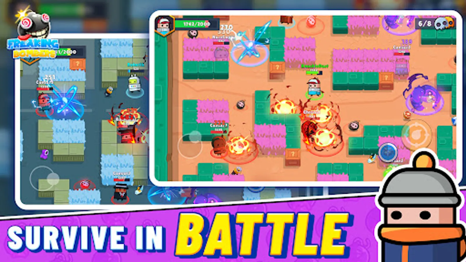 The choice is yours: A battle royale style fight for survival. Collect power-ups for your Freaking Bombers. Make friends or play solo - be the last Freaking Bomber standing in the hottest battle royale.