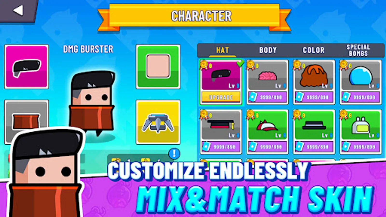 Collect and upgrade a variety of Bombers’ parts with a wide range of attributions to fit your playstyle.