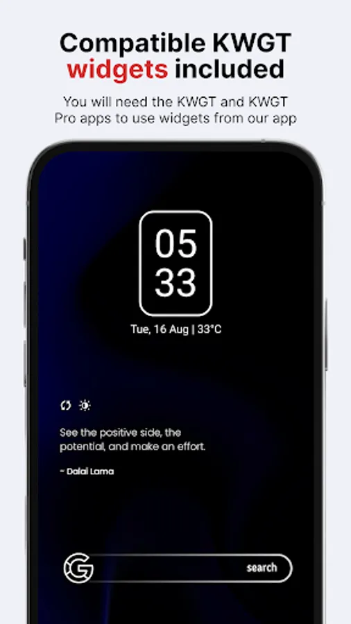 Best for dark wallpapers and themes (20 included in the app)