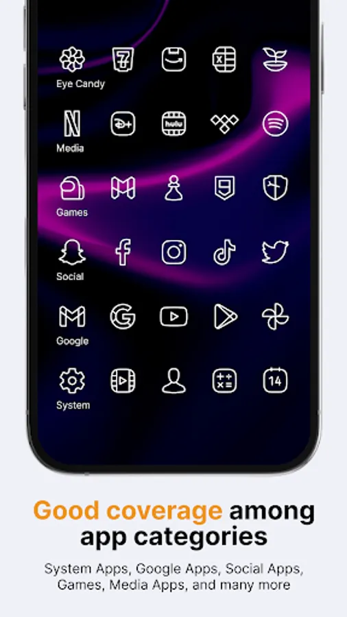 Other launchers can apply Caelus White linear icons from your launcher settings.