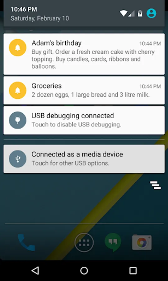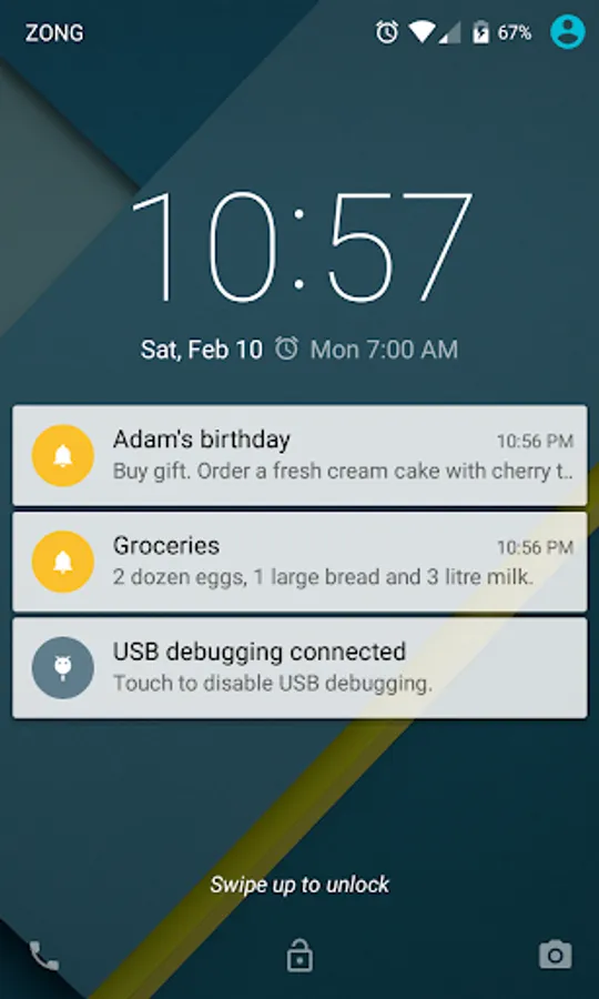 Easiest app to setup reminders in notification area and lock screen. Whether it's a grocery list , an important meeting, quick todo or notes. Sticky notifications has got you covered. It's free and lightweight on both memory and battery.