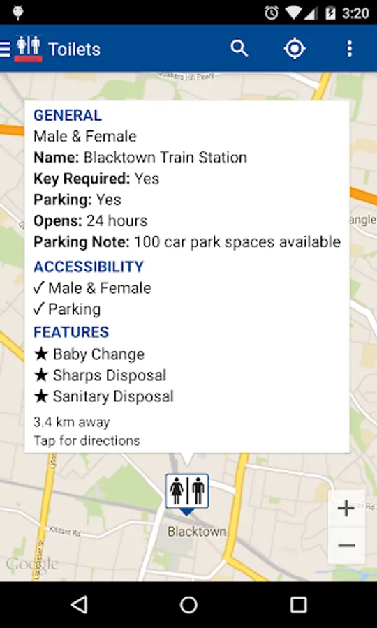 With this app you can quickly find the nearest public toilet. Each toilet may have the following information.