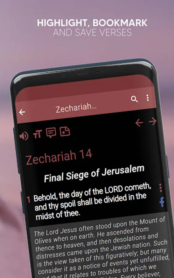 In addition to multiple functionalities, it contains the complete biblical text of the most read version of all times: King James Version (KJV) enriched with commentaries.