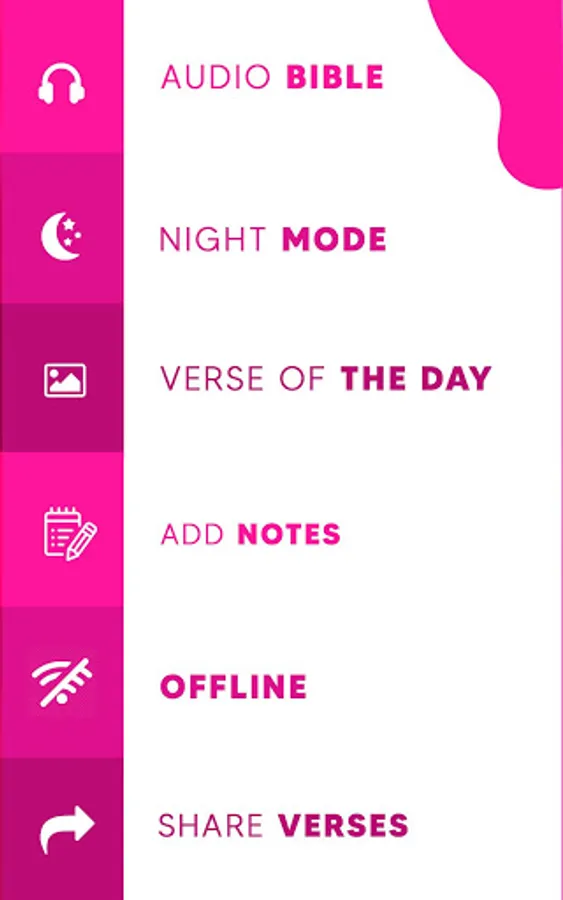 - Night mode option: if you use your Bible app before going to sleep, apply night mode to protect your eyesight and get a better rest