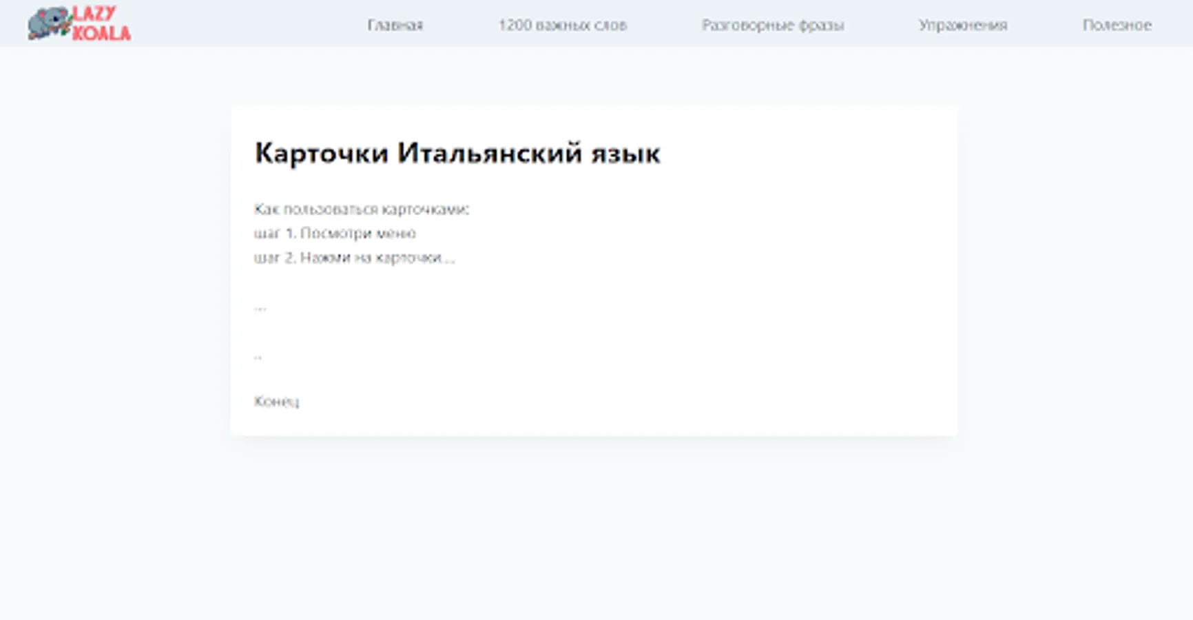 About Итальянский карточки