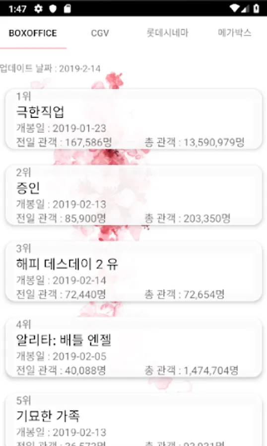 Box Office # 1 to # 10 in popularity Ranking movie, release date, number of audiences all day, total number of audiences at once!