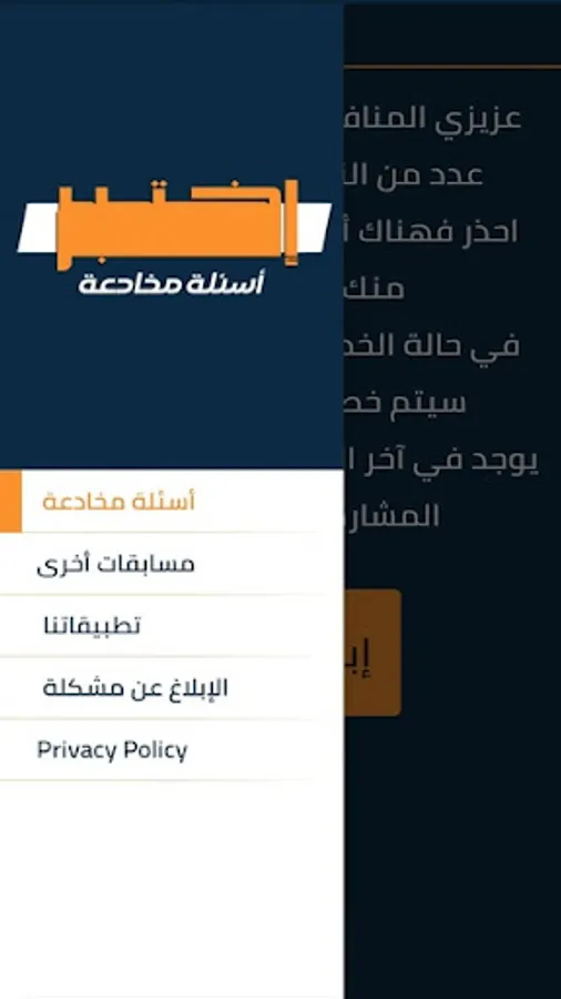 A smooth and easy-to-use side menu that enables you to move between the sections of the game as you like, a section in the game to request the new update of the questions manually, register in the application for the purpose of sharing your name on the list of general statistics among the contestants.