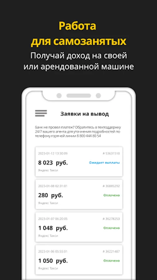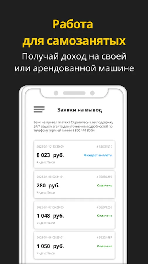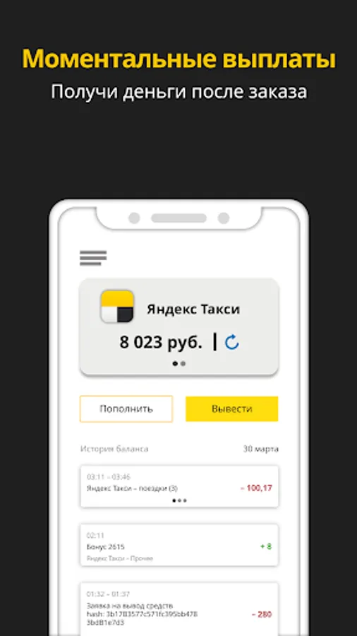 Get a job in Yandex.Pro and get on the line in a few minutes - really with the Style taxi fleet! Download Style Taxi Depot app, register and start earning today! When withdrawing, money is credited to the card in 1-2 minutes - try withdrawing funds after the first trip to see for yourself.