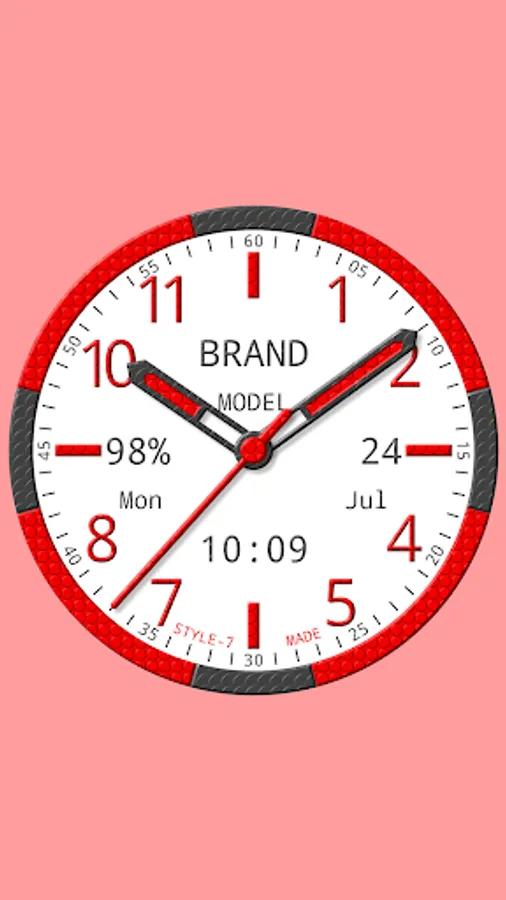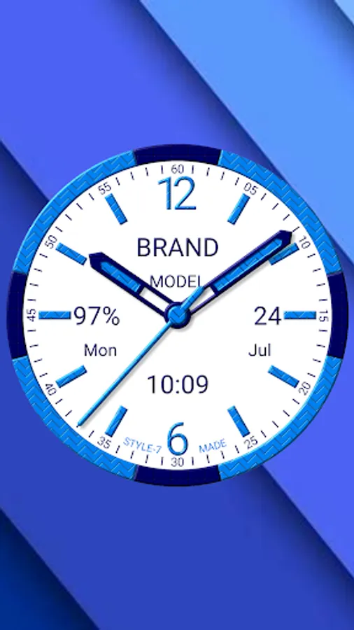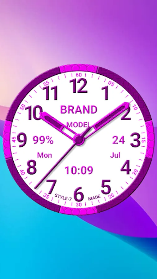 The analog clock has a wide range of appearance settings: seven types of primary and secondary color themes, as well as seven types of dials. It is possible to use special textures that give greater realism.