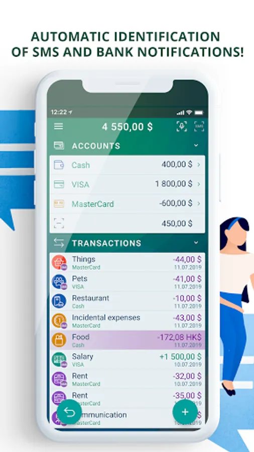 Paymaster is your personal accountant and budget helper, which tracks expenses in an automated way and controls your finances. You will be always aware of how much money is in your wallet, on your credit card and your bank account. In addition, you will always know all about your debts, what is owed to you and for which planned purchases you need a budget.