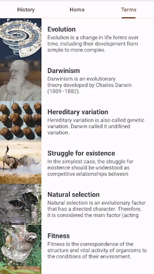 Biological evolution is the development of wildlife. The main driving forces of evolution were discovered by Charles Darwin. He explained evolution in terms of natural selection, hereditary variation, and the struggle for existence.