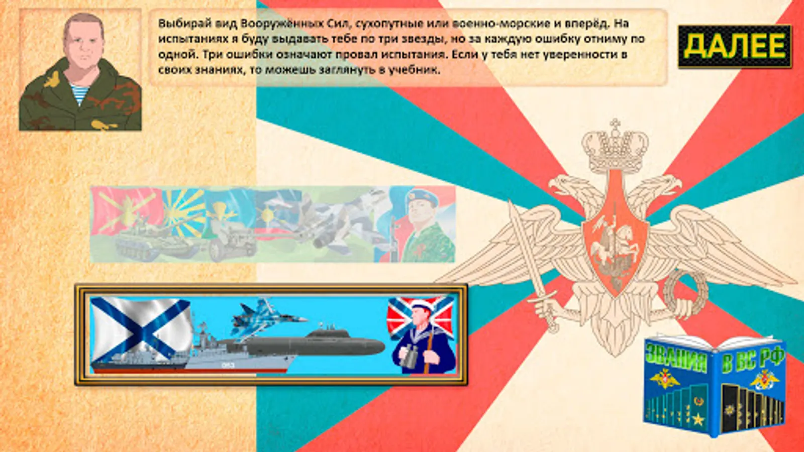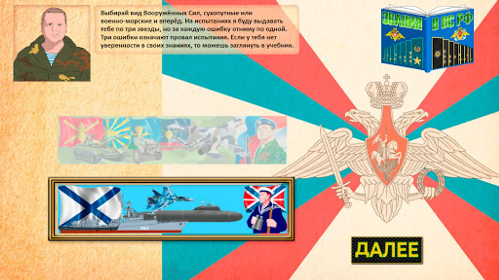 The game will allow you to study the existing ranks in both the land and naval Armed Forces of Russia.