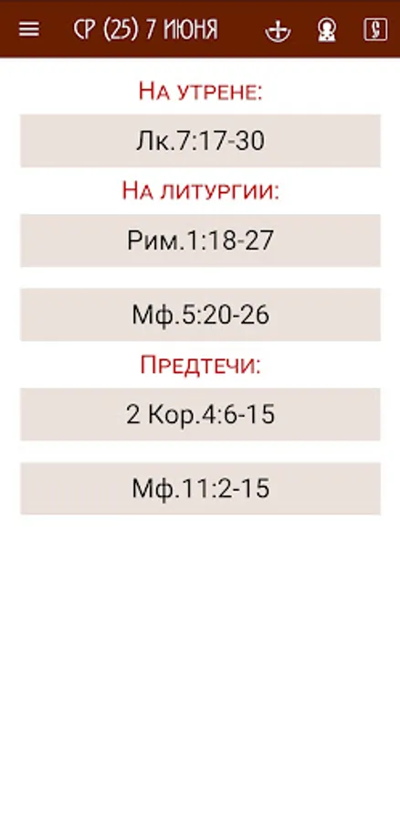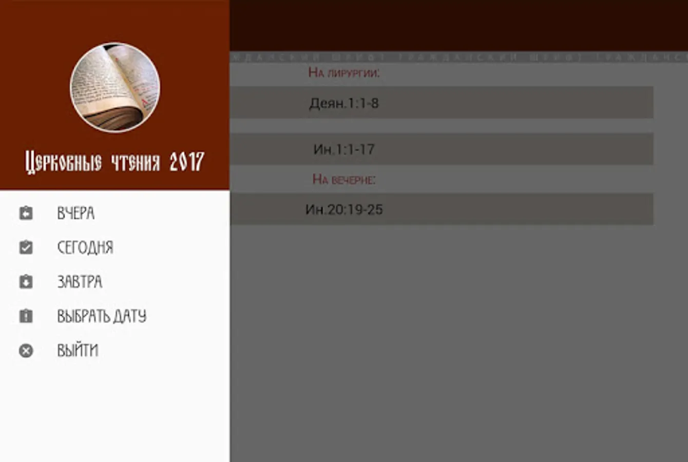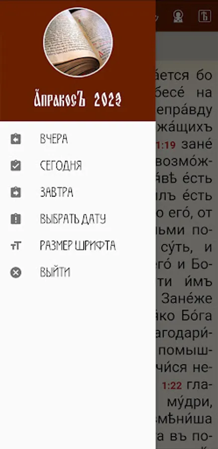 The application contains the Apostolic and Gospel readings read at all church services in 2023, in accordance with the charter of the Orthodox Church.