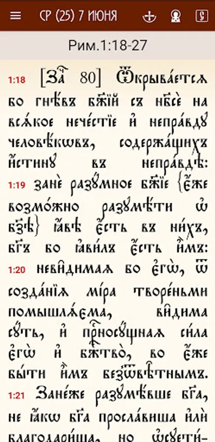 1. If the acoustics in your temple are not good enough, you can follow what is being read on the phone. The Church Slavonic text is presented both in traditional orthography and in civil script with accents.