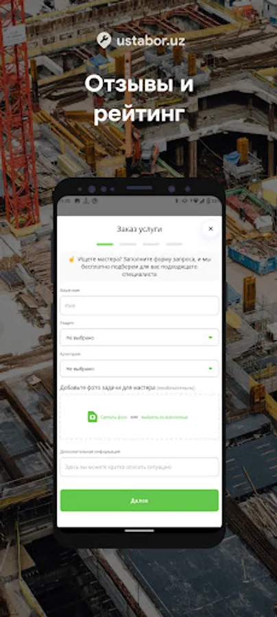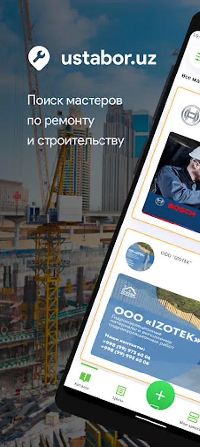 The app that allows you to look at the gallery of the works of construction professionals, choose what you like and get a contact info for the professionals absolutely free.