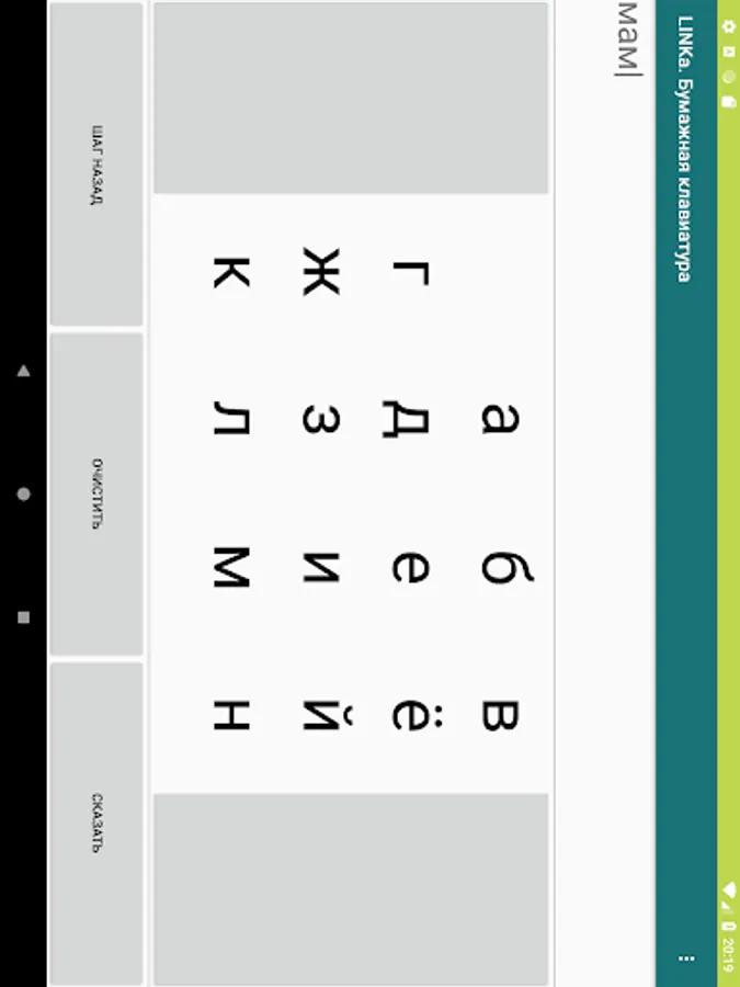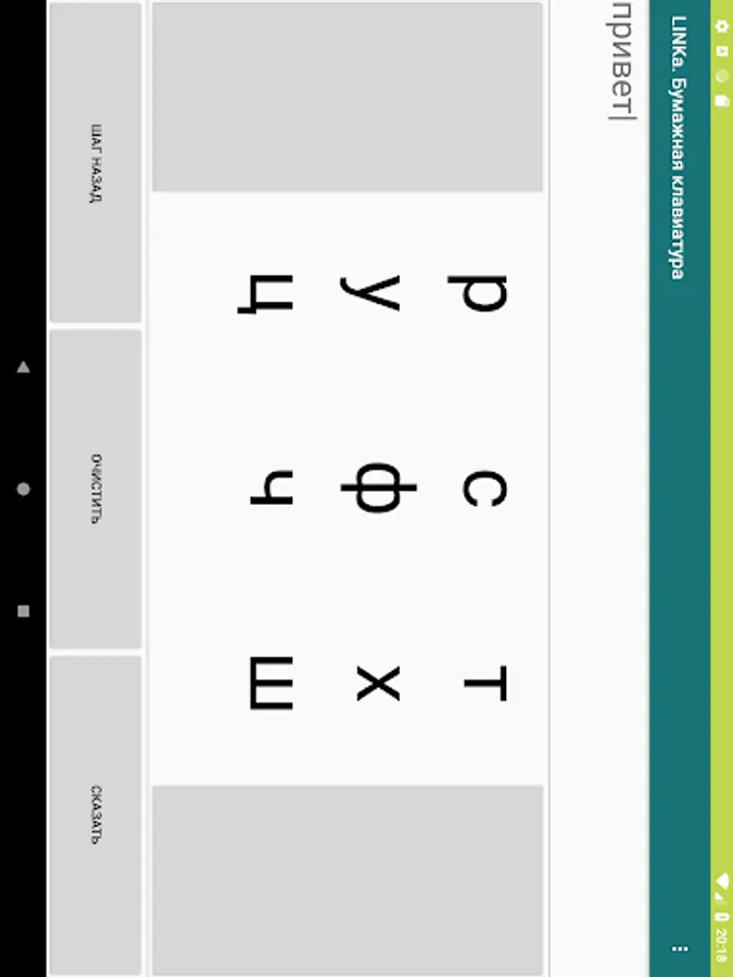 LINKa. Paper keyboard is an application for people with the problem of hand mechanics, which allows typing with large keys.