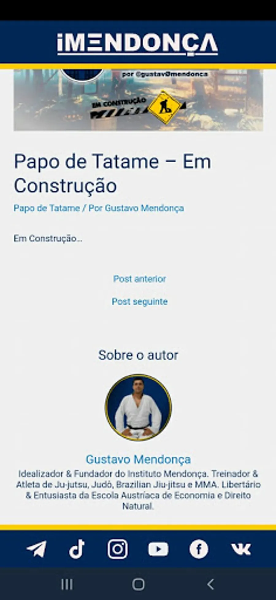 The Mendonça Institute was created by Gustavo Mendonça to promote Ju-jutsu, Judo, and Brazilian Jiu-Jitsu for all humanity, based on the values of Ethics, Freedom, Responsibility, Loyalty and Flexibility. Always seeking to approach the study of the innumerable views regarding Ju-jutsu from a critical and scientific point of view, respecting the principles idealized by Jigoro Kano: Maximum Efficiency with minimum effort of the body and the spirit (Seiryoku Zen'Yo) & Prosperity and Mutual Benefits (Jita Kyoei).
