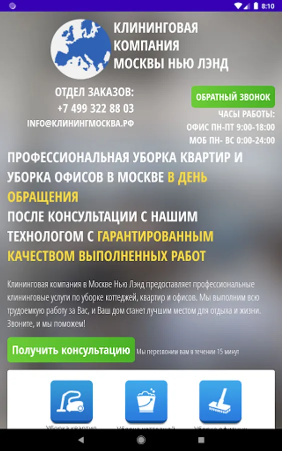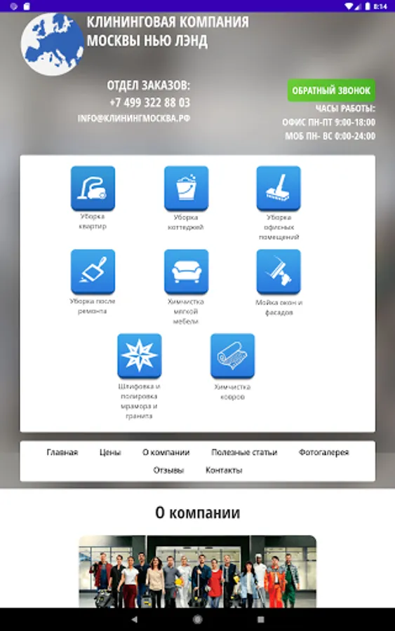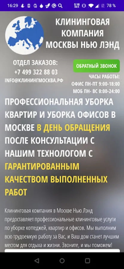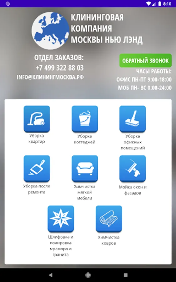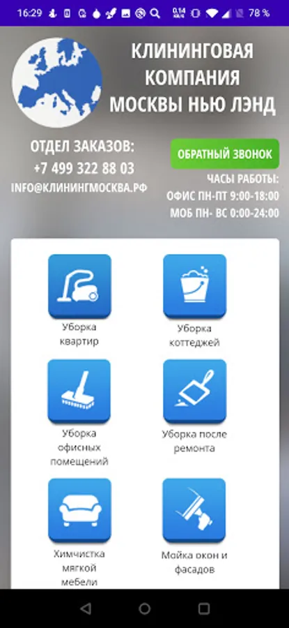 The New Land holding company provides comprehensive services for the operation of buildings and territories. The mobile application will allow you to get acquainted with the complete list of services provided, as well as place an order.