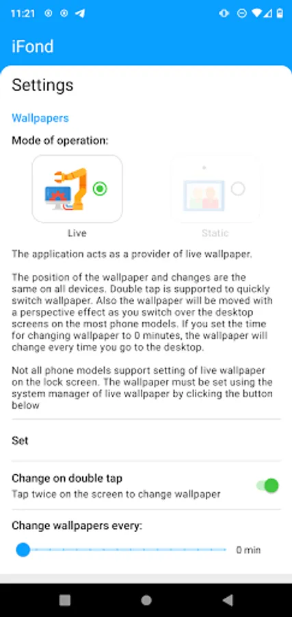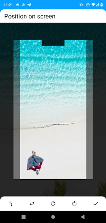 Application uses original unmodified photos from the gallery and does not save any cropped intermediate images thus keeps memory clean. Allows to set several different fragments from one photo e.g. two sides of one wide landscape picture.