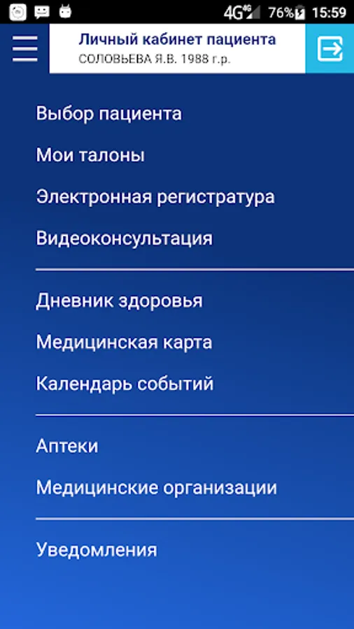 - to work in the application on behalf of another patient, the user must be indicated for this patient as the legal representative in MIS Clinics of Samara State Medical University.