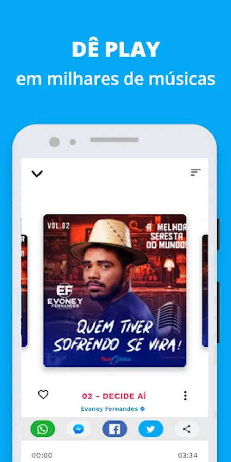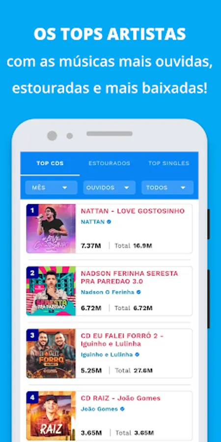 Stay tuned to your favorite Forró, Sertanejo, Axé, Gospel and Funk artists and much more. Now it's much easier to use the best independent music platform in Brazil.