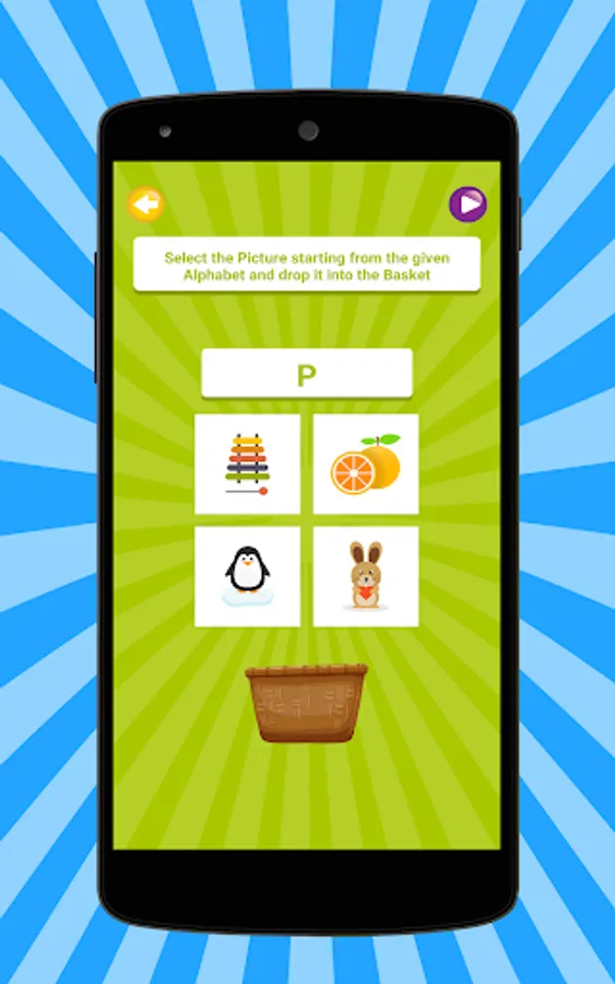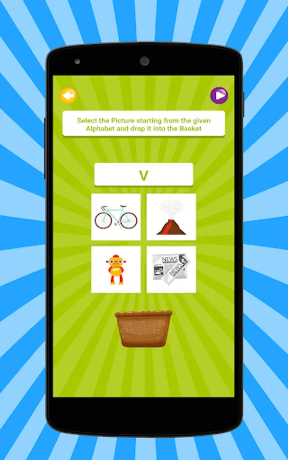> Picture Quiz - In this Activity Kid will select the Picture starting from the given Alphabet