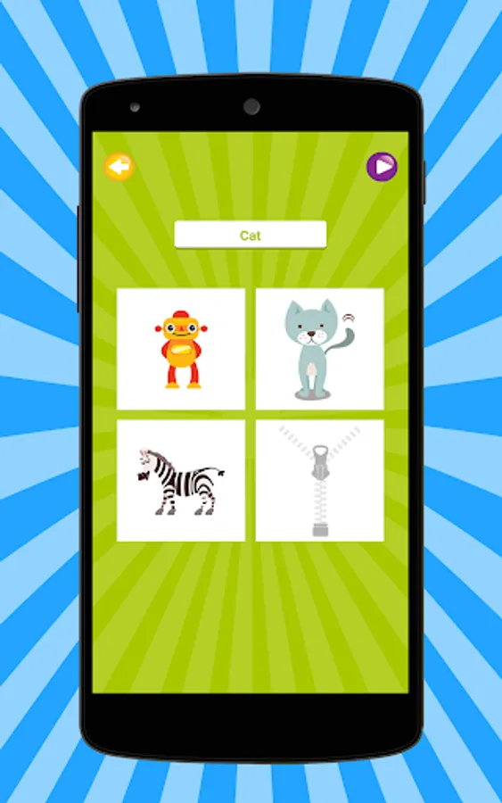 > Word Quiz - In this Activity, Kid will select correct Picture with the given matching Word.