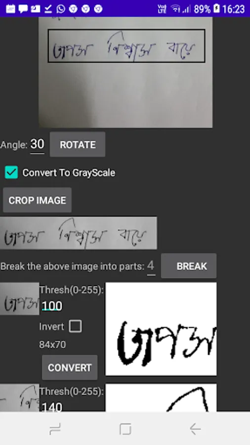 The selected portion of the image will be cropped in gray scale mode and will be shown below the crop button.