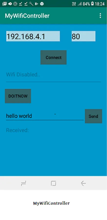 MyWifiController will send the text typed in the text field to the connected device when the Send button is pressed.