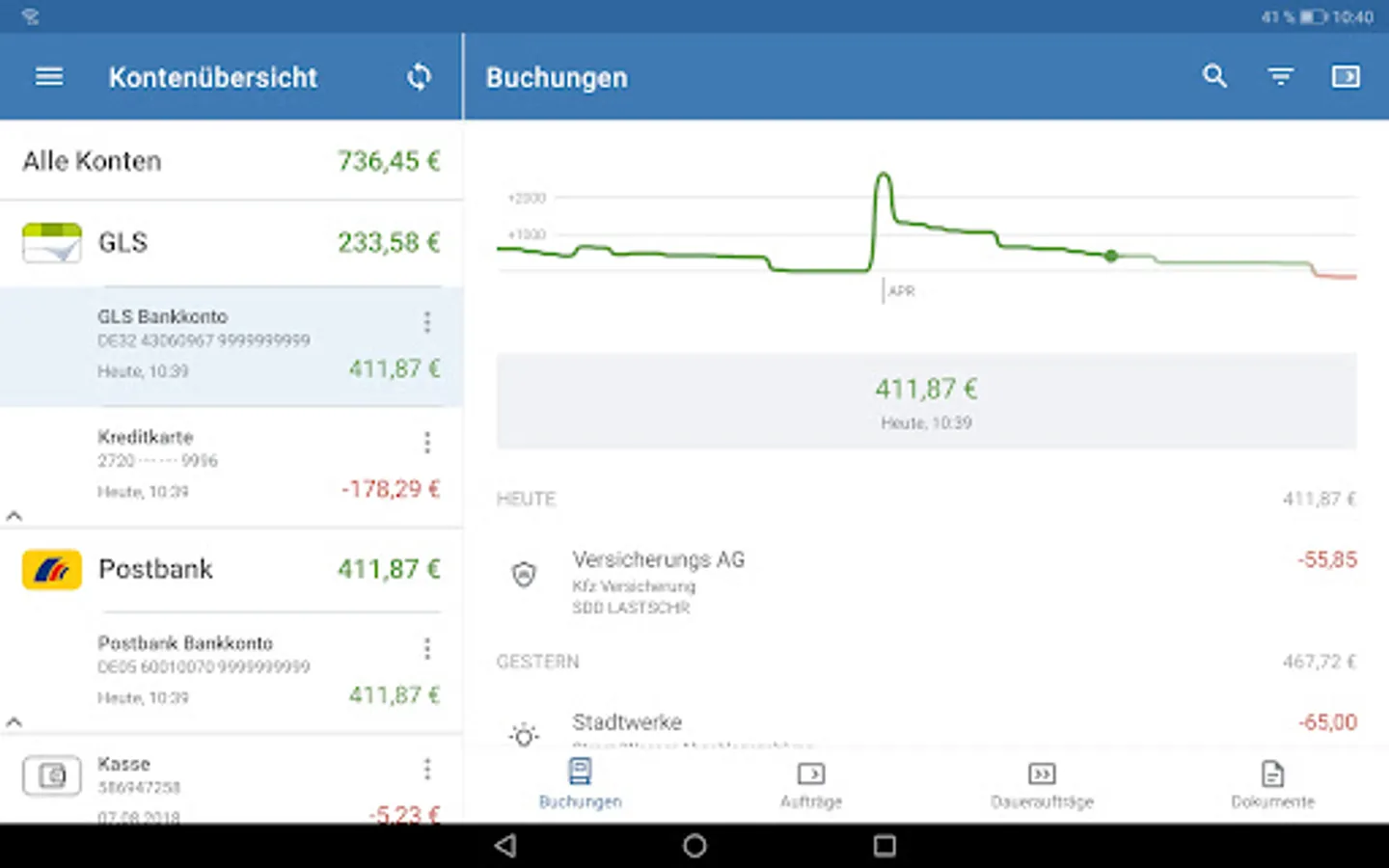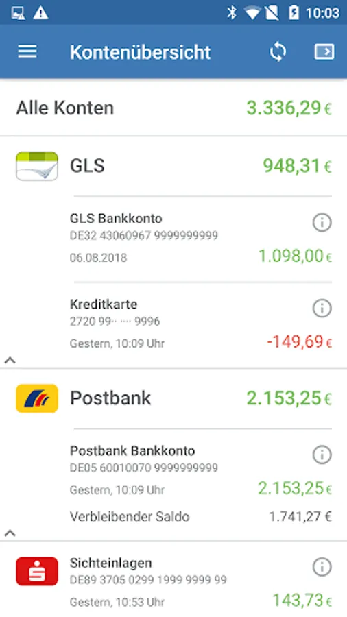 • Current account, overnight money, savings book, securities account, credit card, fixed deposit, currency account, offline account, cash on hand