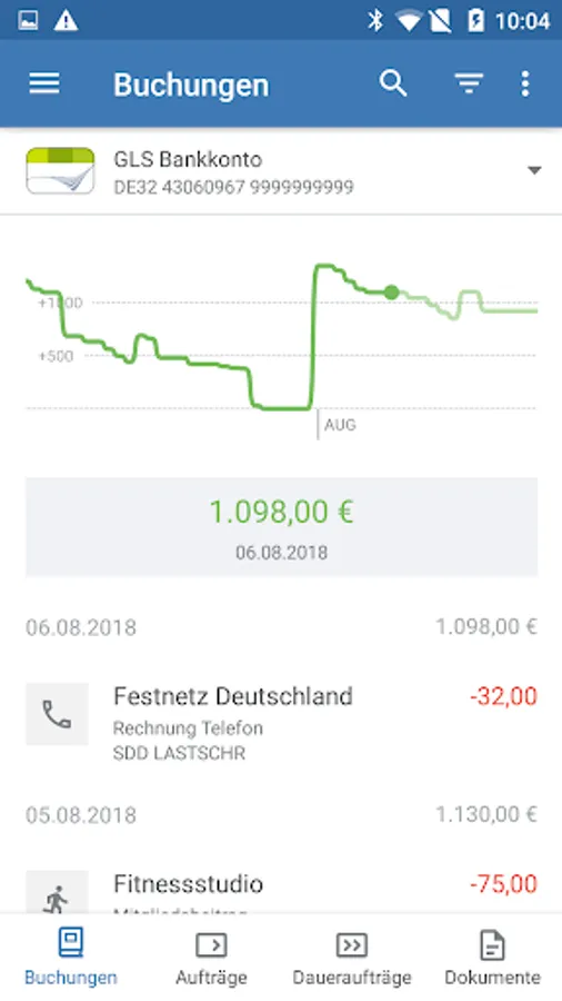 • Balance, sales, transfer, forward orders, standing orders, direct debit, international transfer