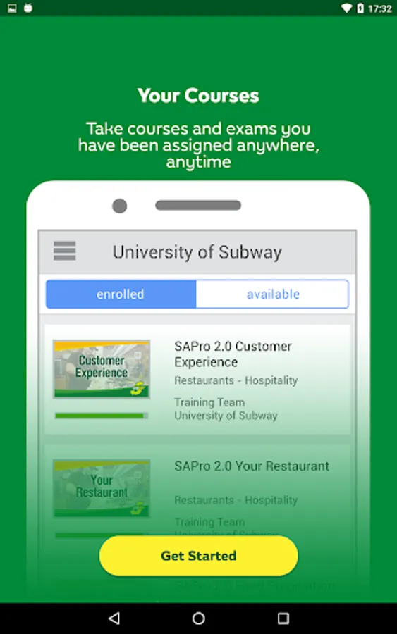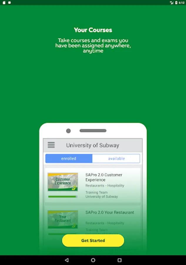 The University of SUBWAY® is a free online training tool for SUBWAY® franchisees to use to help train their employees. SUBWAY® restaurant owners worldwide can use this tool to assign courses and quizzes to employees to take on their tablets and mobile devices. The app is localized in 8 languages (English, Spanish, Portuguese, German, French, Chinese, Korean, and Turkish).