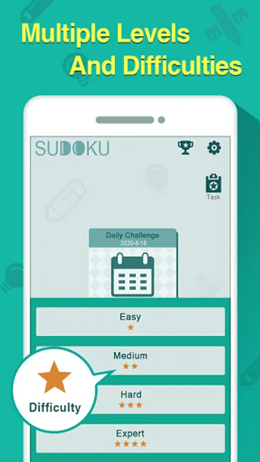 Start your day with Sudoku exercises in several number puzzles. It is a joy to take daily Sudoku from easy to challenging levels. Keep practice and become a Sudoku giant solving puzzles in seconds!