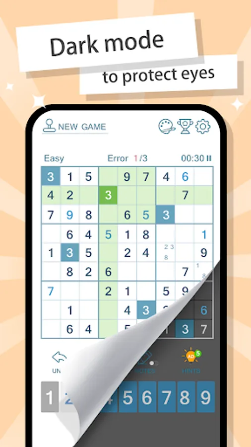 ●Note Mode - You can take notes to find the numbers easily as on paper. Each time you fill in a cell, notes are automatically updated!