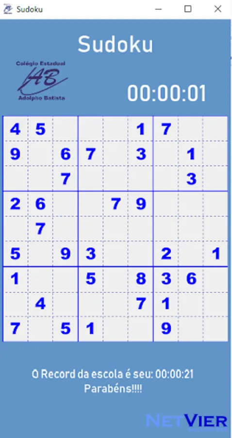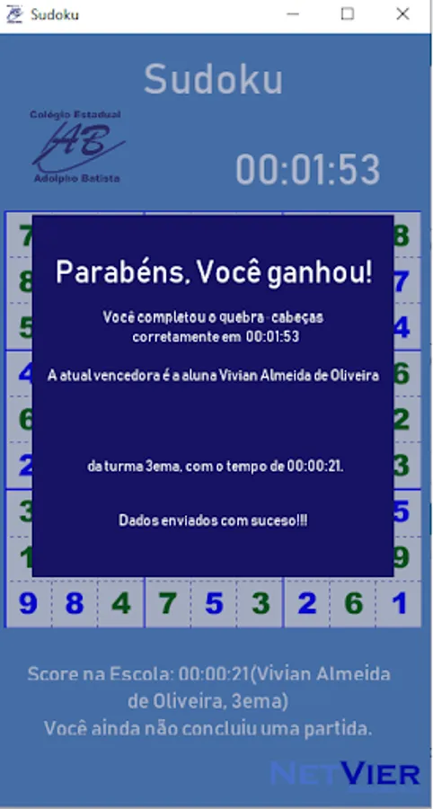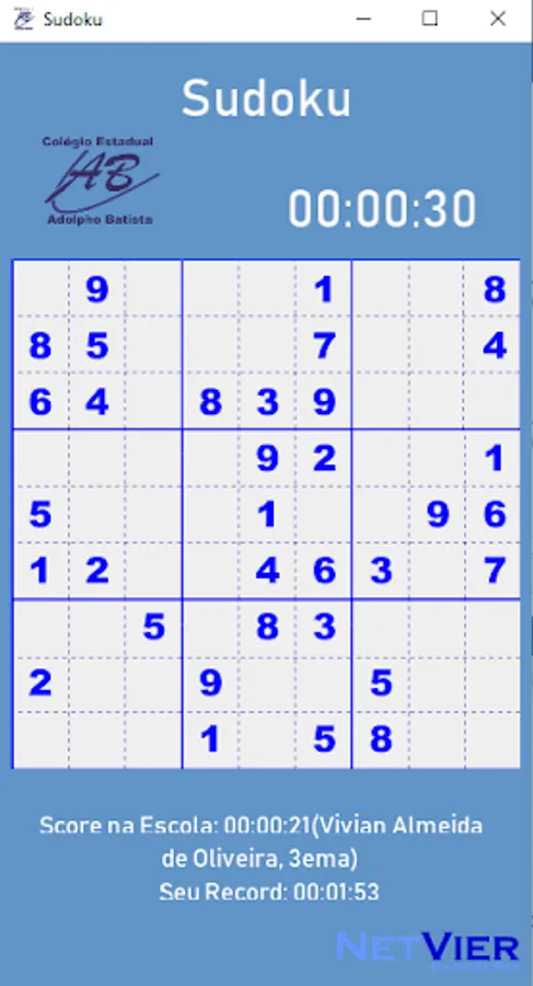 Traditional Sudoku with ranking for students of Adolpho Batista State College in Anapolis / GO.