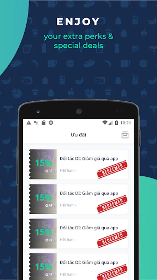 • Enjoy perks and drink coupons, offered for the app user
