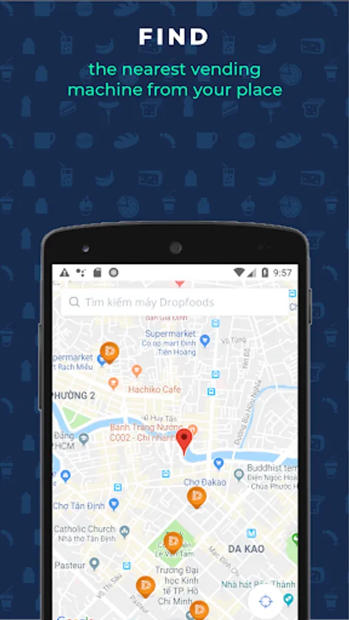• Locate the nearest Dropfoods vending machine from your current location