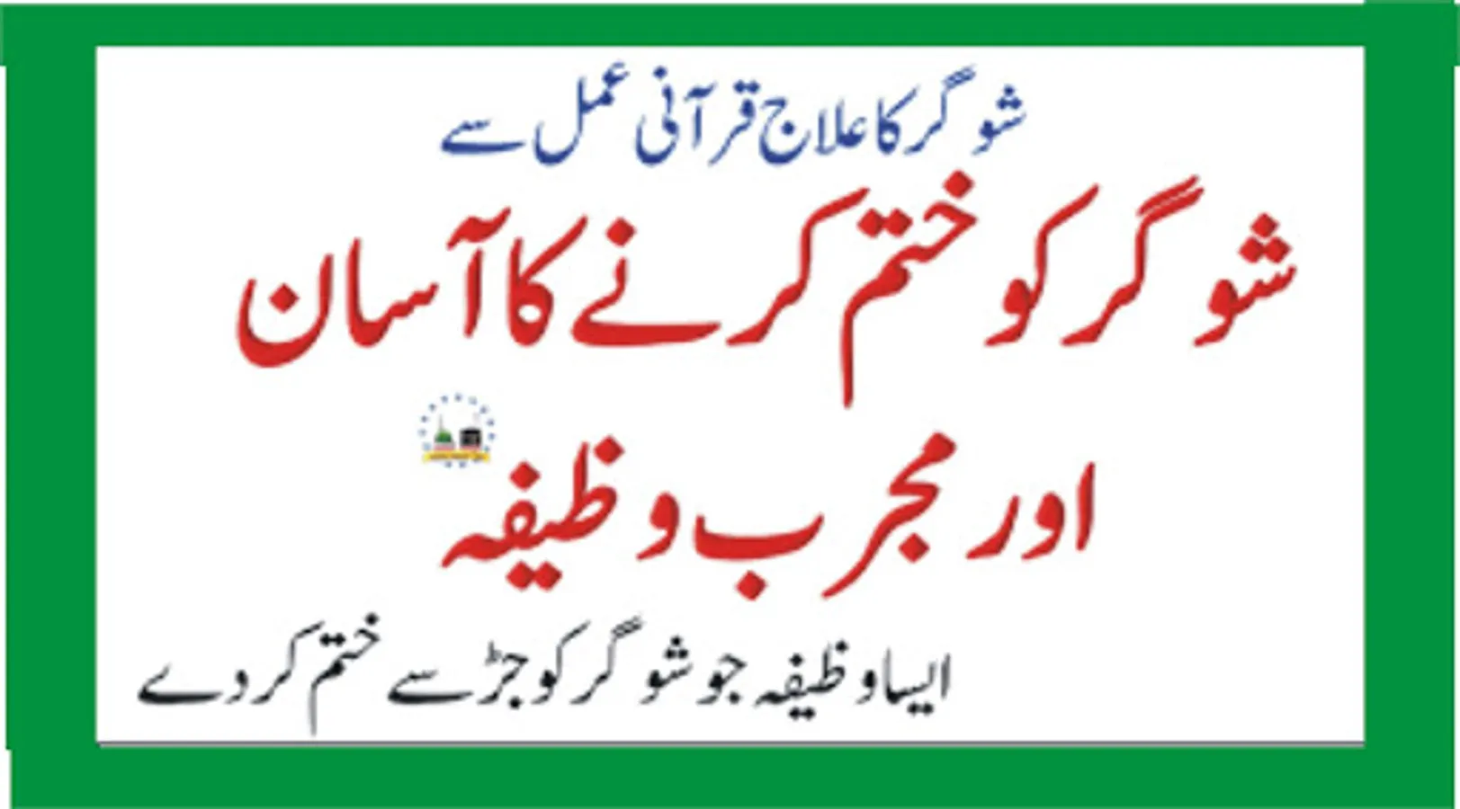 Blood Sugar Control Sab issi Wazifa Ke Krny Se Har Kisam Ki Sugar Ka Khatama Hamesha Ke Liye In Shaa Allah. Bulkey Har Bimari Ka ilaj Quran Se hai.
