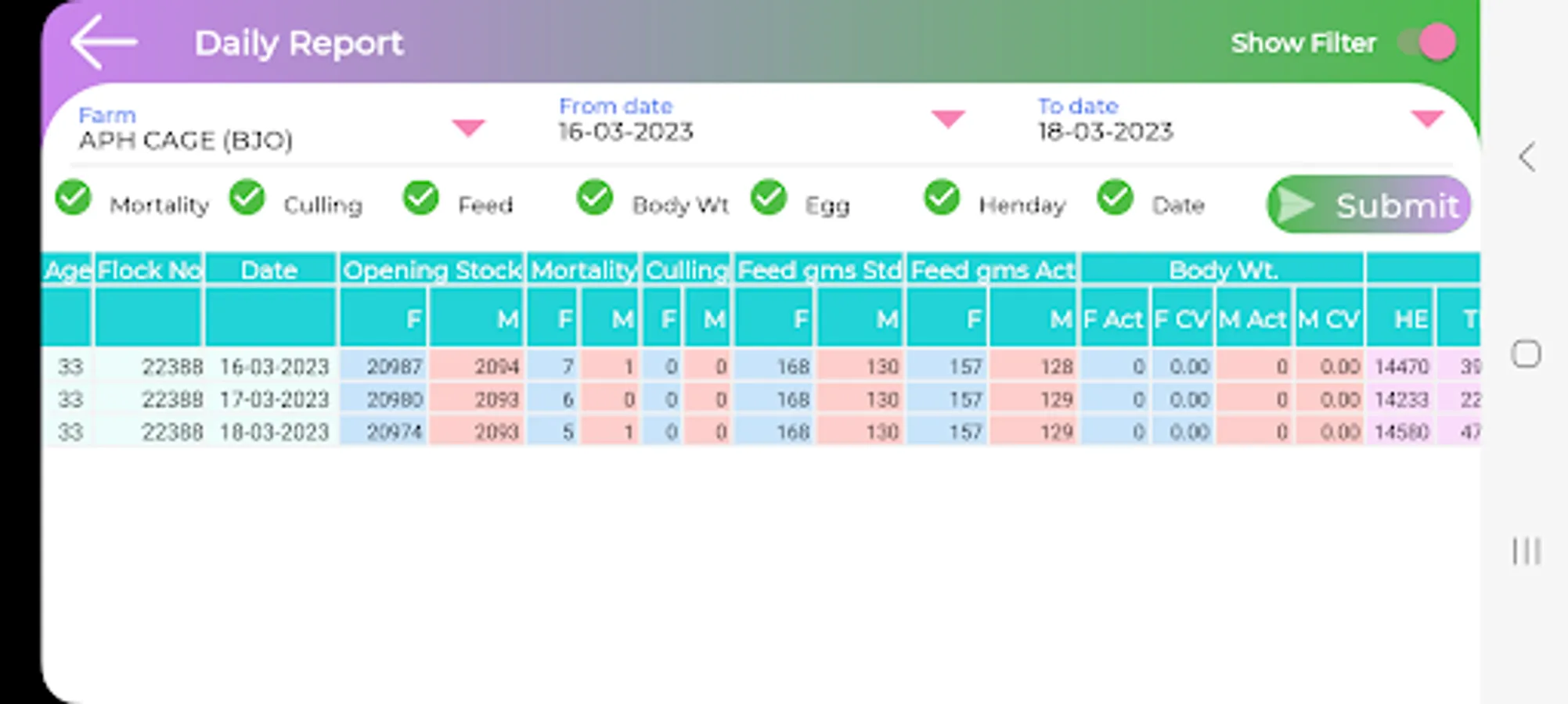 Breeder Manager App for managers, to Manage Breeder farm branches with Farm Daily entries, Farm stocks, Records and Detailed Reports /Graphs.