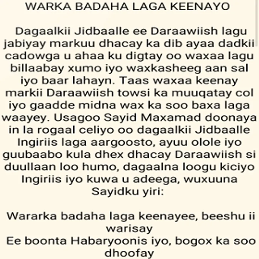 Barnaamijkan waxaa laguugu diyaariyay dhamaan gabayadii Sayid Maxamed Cabdulle Xasan Ilaahay ha u naxariistee.