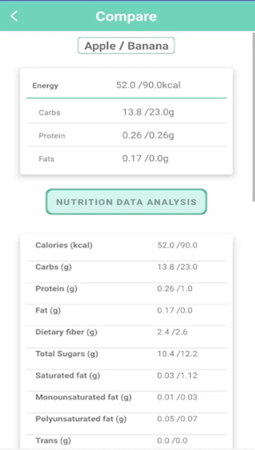 • Find foods with all their nutritional values and add them to your plan. All common foods have been added. Compare foods, to decide which to add to your plan. Menu “Foods”