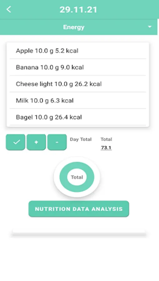 • Find your saved calculations of daily needs. Menu “Daily Need”